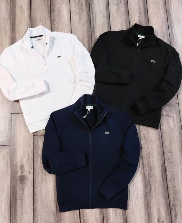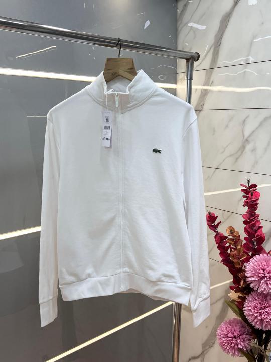 Lacost e White Premium Imported Interlock Cotton 360 GSM High Neck and Embroidered Logo Zipper Jacket 3432