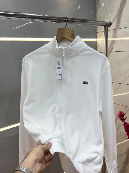 Home Premium sweatshirts Lacost e White Premium Imported Interlock Cotton 360 GSM High Neck and Embroidered Logo Zipper Jacket 3432